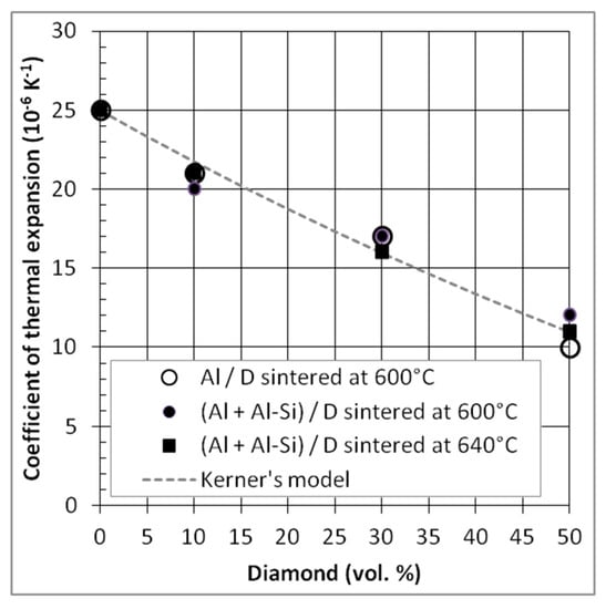 Concerning the calculation of the in-plane CTE, the Kerner model [13,16], given below, was used for composites with diamond reinforcements: