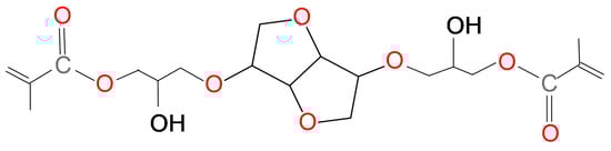 The influence of cycloaliphatic ring on WS was not defined clearly enough. Both aromatic structures (regardless of the molecular symmetry) and symmetrical cycloaliphatic CHMDI caused a decrease in WS. The presence of asymmetrical cycloaliphatic IPDI resulted in a significant WS increase. This result can be confirmed by findings of Łukaszczyk et al. The comparative analysis of the influence of Bis-GMA and its isosorbide analogue (IS-DMA) (Scheme 3) on WS of their homopolymers and copolymers with TEGDMA 40 wt% was performed in their work [59].