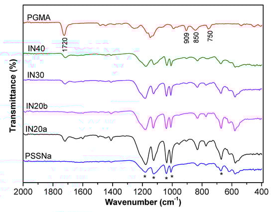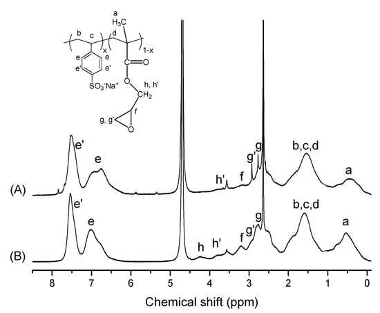 3.1. Synthesis and Characterization of P(SSNa-co-GMAx) Copolymers