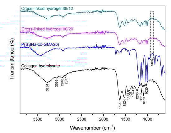 2.2. Modification of Collagen Hydrolysate with P(SSNa-co-GMAx)