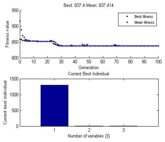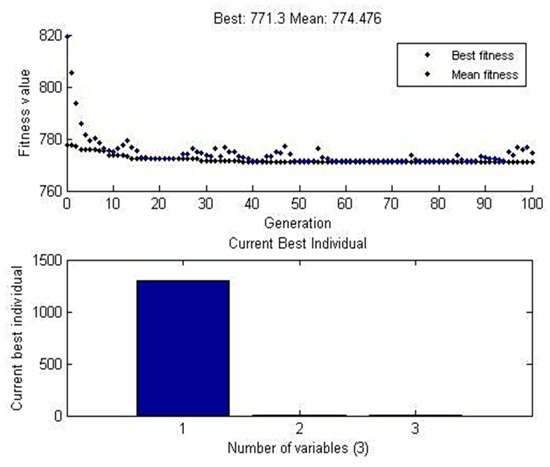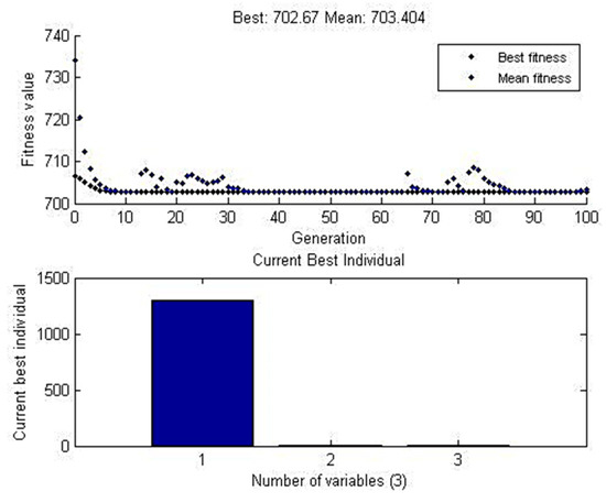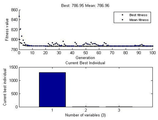 In our study, the essential elements of GA consist of a value of Tool rotational speed, Projection, depth of cut. In this study, the best value predicted by GA was 837 MPa, and the means value was 837.414 MPa for the best individual 1300 rpm tool rotational speed, 1 mm tube projection, and 0.5 mm depth of cut. The predicted value was shown in Figure 8. The comparison values of GA and experimental values were tabulated in Table 9. The parameters used in GA are; population size = 100, length of chromosome = 20, selection operator = stochastic uniform, crossover probability = 0.8, mutation probability = 0.2, and fitness parameter = tensile strength. The objective function is given by Tensile strength = f (Speed, Projection, Depth).