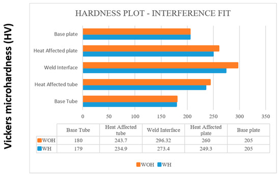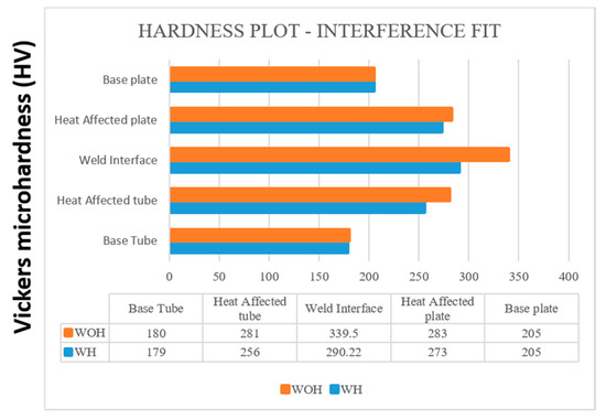 Hardness plot-Interference Fit for the tube with and WOH by employing backing block.