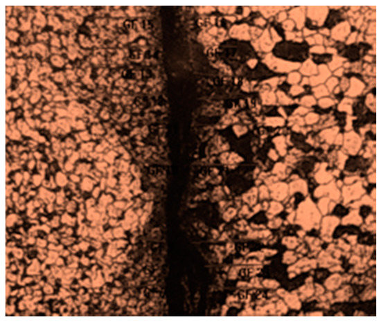 Grain size measurement of base metal—tube plate (52.3 µm).