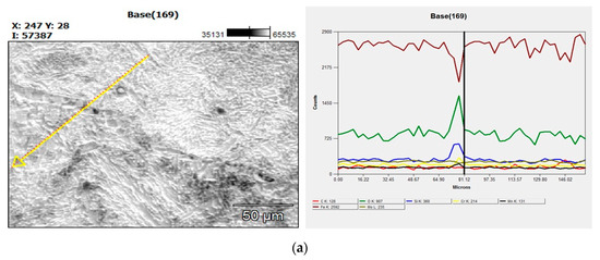 The X-ray diffraction (A PANalyticalTM X’Pert PRO system, Malvern, UK) analysis was carried out to characterize the intermetallic compound at the weld interface. When the tool rotational speed was set at 1300 rpm, 1000 rpm, and 700 rpm, the XRD scan indicated the absence of intermetallic compounds. These are clearly reflected in Figure 31.