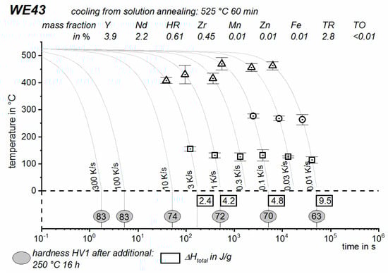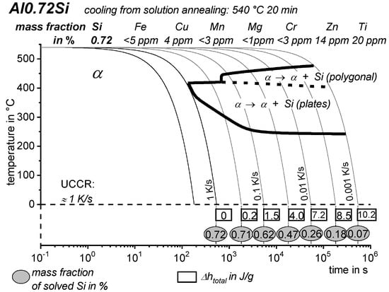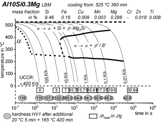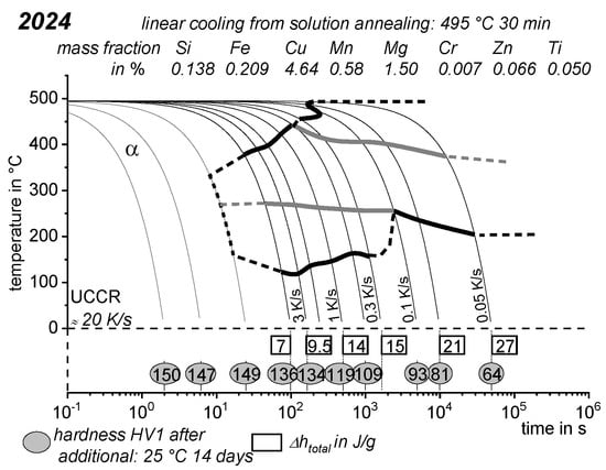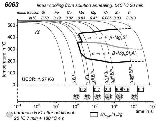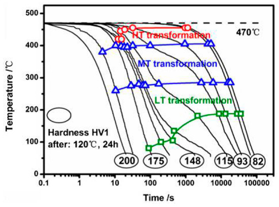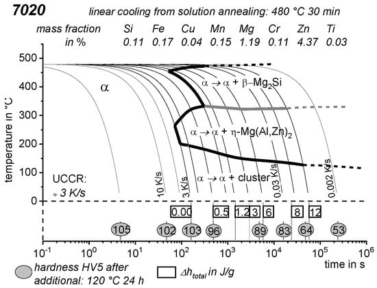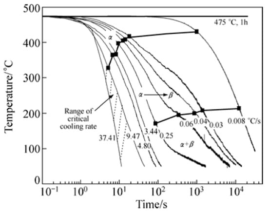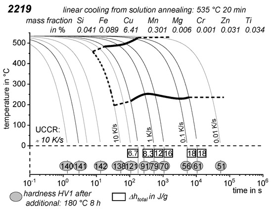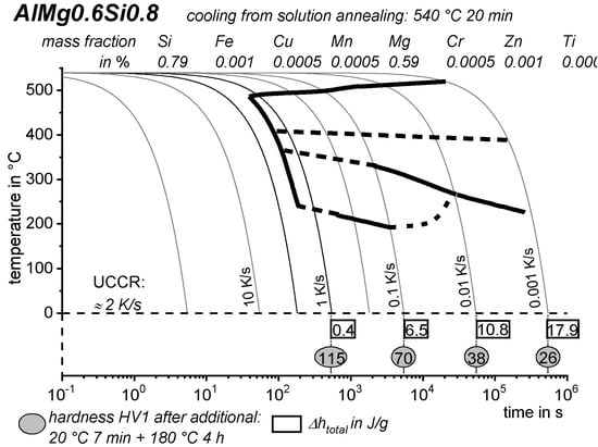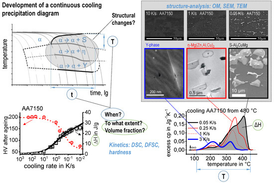 - Milkereit, B.; Kessler, O. Continuous-Cooling Precipitation Diagrams. In ASM Handbook Volume 4E: Heat Treating of Nonferrous Alloys; George, E., Ed.; ASM International: Materials Park, OH, USA, 2016; pp. 191–197. ISBN 978-1-62708-112-2. [Google Scholar]