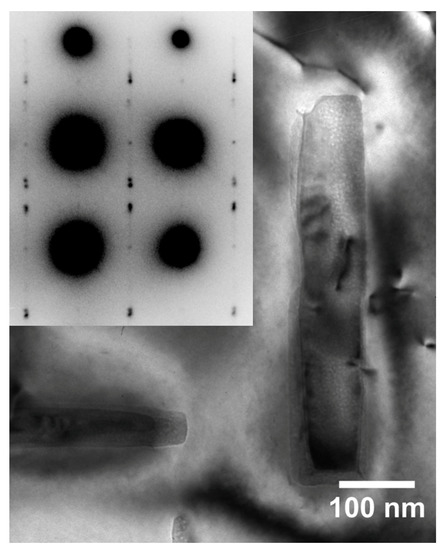 - Maeda, T.; Kaneko, K.; Namba, T.; Koshino, Y.; Sato, Y.; Teranishi, R.; Aruga, Y. Structural and compositional study of precipitates in under-aged Cu-added Al-Mg-Si alloy. Sci. Rep. 2018, 8, 16629. [Google Scholar] [CrossRef]