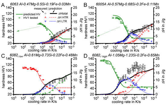 - Falahati, A.; Povoden-Karadeniz, E.; Lang, P.; Warczok, P.; Kozeschnik, E. Thermo-kinetic computer simulation of differential scanning calorimetry curves of Al-Mg-Si alloys. Int. J. Mater. Res. 2010, 101, 1089–1096. [Google Scholar] [CrossRef]