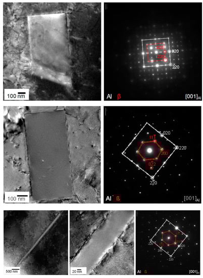 - Sagalowicz, L.; Lapasset, G.; Hug, G. Transmission electron microscopy study of a precipitate which forms in the Al-Mg-Si system. Philos. Mag. Lett. 1996, 74, 57–66. [Google Scholar] [CrossRef]