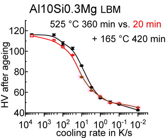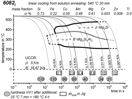 - Fröck, H.; Milkereit, B.; Wiechmann, P.; Springer, A.; Sander, M.; Kessler, O.; Reich, M. Influence of Solution-Annealing Parameters on the Continuous Cooling Precipitation of Aluminum Alloy 6082. Metals 2018, 8, 265. [Google Scholar] [CrossRef]