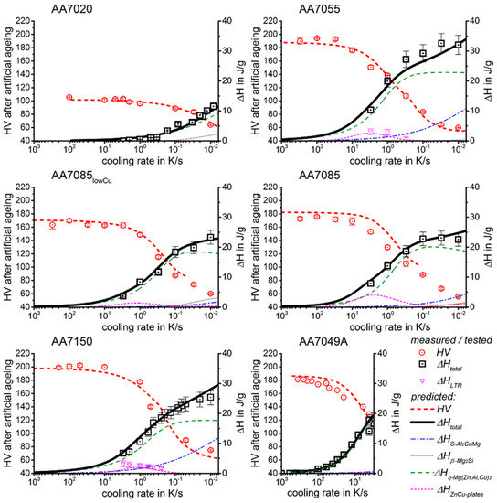- Yoshida, H.; Watanabe, T.; Hatta, H. Effect of quenching rate on age hardening in an Al-Zn-Mg alloy sheet. In 16th International Conference on Aluminium Alloys, Montral, Canada; Mary, W.M.B., Ed.; METSOC.org: Montreal, Canada, 2018; p. 393778. ISBN 978-1-926872-41-4. [Google Scholar]