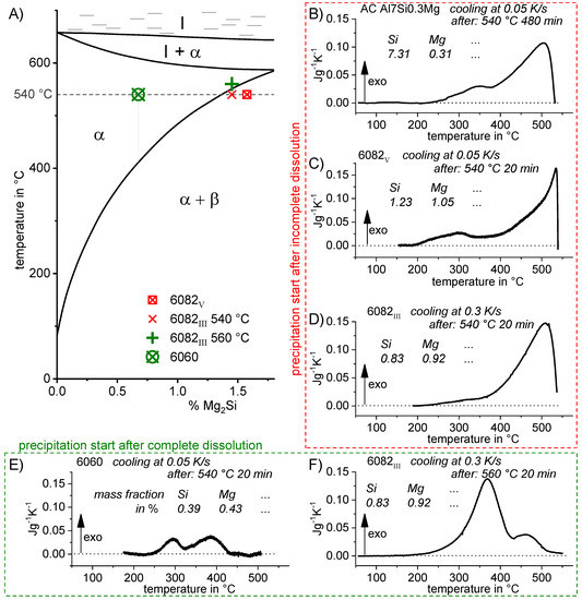 - Birol, Y. Effect of cooling rate on precipitation during homogenization cooling in an excess silicon Al-Mg-Si alloy. Mater. Charact. 2012, 73, 37–42. [Google Scholar] [CrossRef]