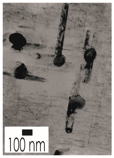 - Marioara, C.D.; Andersen, S.J.; Stene, T.N.; Hasting, H.; Walmsley, J.; Van Helvoort, A.T.J.; Holmestad, R. The effect of Cu on precipitation in Al-Mg-Si alloys. Philos. Mag. 2007, 87, 3385–3413. [Google Scholar] [CrossRef]
