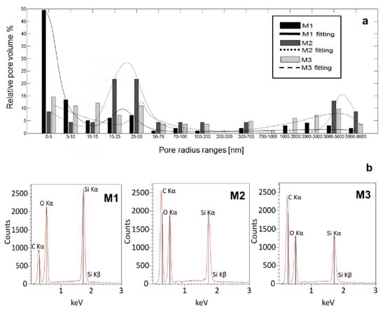 3.1. Analysis of the Pore Size Distribution and Energy Dispersive X-Ray Spectroscopy