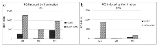 - Magaraggia, M.; Visonà, A.; Furlan, A.; Pagnan, A.; Miotto, G.; Tognon, G.; Jori, G. Inactivation of vascular smooth muscle cells photosensitised by liposome-delivered Zn(II)-phthalocyanine. J. Photochem. Photobiol. B 2006, 82, 53–58. [Google Scholar] [CrossRef] [PubMed]