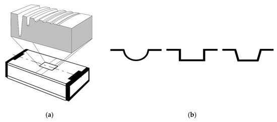 - European Committee for Standardization (CEN). ISO 5436-1:2000 Geometrical Product Specipications (GPS) Surface Texture: Profile Method. Measurement Standards—Part 1: Material Measures; CEN: Bruxelles, Belgium, 2000. [Google Scholar]