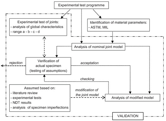 In order to study the joint behavior, experimental and numerical analysis was performed. The main stages of analysis are presented in Figure 5.