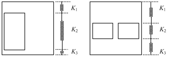 The lateral stiffness of the gable with openings could be divided into three parts in series: the lateral stiffness of steel plate wall at the upper part of the openings; the lateral stiffness of steel plate wall at the range of height of the openings; the lateral stiffness of steel plate wall at the lower part of the openings.