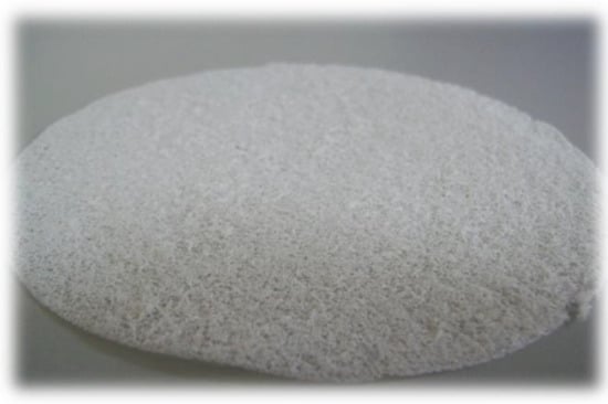 The 90:10 butyric-acetic chitin copolyester (BAC 90:10) was obtained with the method using a mixture of acetic and butyric acid anhydrides in the presence of perchloric acid as a catalyst [,]. BAC 90:10 was a raw material for obtaining highly porous dressings. Two methods of manufacturing were developed []: (a) pouring BAC 90:10 solution in ethanol on a layer of solid porophor, which was later leached, and (b) using the suspension of porophor in BAC 90:10 solution, however, this method was required using a mixture of solvents of bulk density similar to the one of the used porophor. An optimal solution was used in the mixture of ethyl alcohol with chloroform as solvents. Both methods were allowed for obtaining highly-porous materials (porosity of 95–99%) of thickness up to 0.11 mm. For manufacturing of the Medisorb R Membrane and Medisorb R Ag, the method using NaCl as porophor and 3% BAC 90:10 solution in ethanol was applied. The exact manufacturing methods of the dressings and their full physio-chemical and biological characteristics (in vivo and in vitro tests on animals) are presented in other papers [,,].
