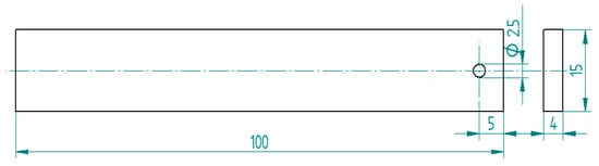 Test specimens were cut out from one metal sheet of 4 mm in thickness. Dimensions of the prepared specimens are given in Figure 1. Cut-out specimens had their sharp edges made blunt, while their surface was ground with abrasive paper. Finally, technological holes of 2.5 mm in diameter were made.