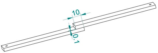 Technological holes made in the specimens of the adhesively bonded material ensured axiality and alignment of the adherends. Adhesive layers were left to cure for seven days. The single-stage curing process was performed at an ambient temperature (22 ± 1 °C), with an air humidity range of 32% ± 2%. To curing process was performed under a pressure of 0.1 MPa. Four batches of adhesive joints were fabricated (in accordance with four types of surface preparation—Table 3), with each batch containing eight adhesive joints.