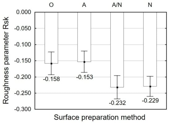 Figure 7. Surface preparation method versus profile roughness asymmetry Rsk.