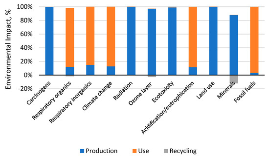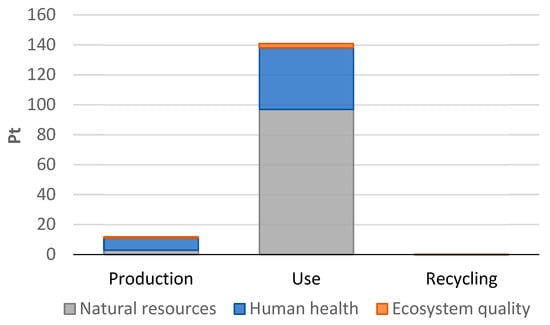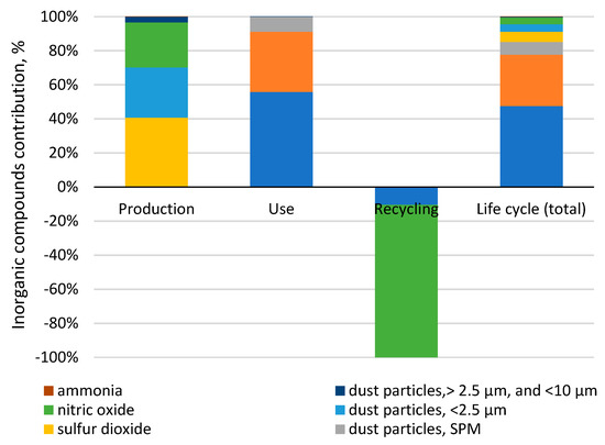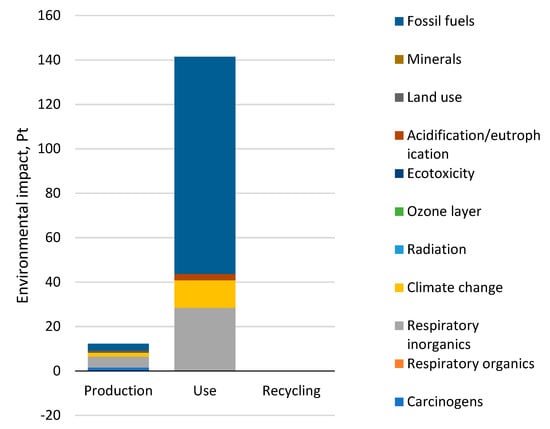 This study has proven that it is the production process (in terms of materials and electric energy consumption) that has the most destructive impact on the natural environment in terms of the emission of inorganic substances that cause respiratory diseases, which is consistent with the results published in [36].