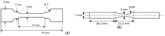 Schematic drawings of (a) tensile sample and (b) fatigue sample.