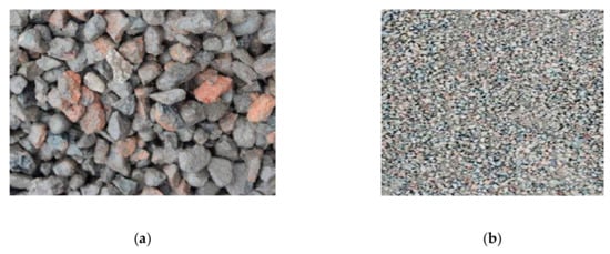 The macro-morphology of natural aggregates and recycled aggregates: (a) natural aggregates; (b) recycled aggregates.