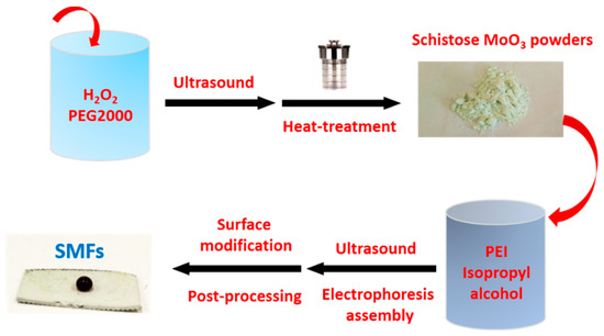Schematic diagram of facile preparation of novel schistose MoO3 powders and SMFs.