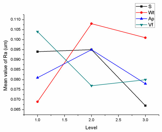 In order to express the influence trend of each factor level on the surface roughness more intuitively, the main effect diagram of polished roughness is obtained.