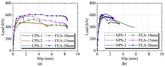 - The accuracy of the proposed finite element method is verified by comparison with push-out test results. When the global mesh sizes were 10 mm, 15 mm and 20 mm, the analyzed shear capacities of conventional perfobond shear connectors accounted for 101%, 111% and 117% of the mean test results, respectively, while those of notched perfobond shear connectors took up 97%, 102% and 105% of the mean tested shear capacities. The proposed finite element model can be used to generate reasonable analysis results for both conventional and notched perfobond shear connectors with the overall element size of 10 mm.