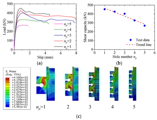 - The increase of the hole number from one to five leads to a decrease in the average shear capacity of the notched perfobond shear connector by 41%. The main reason is that the shear loads are unevenly distributed among the multi-holes in the longitudinal direction. The holes at two ends of the perfobond rib bear greater loads than the holes at the middle. The average shear capacity of the multi-hole notched perfobond shear connector is smaller than that of the single-hole notched perfobond shear connector.