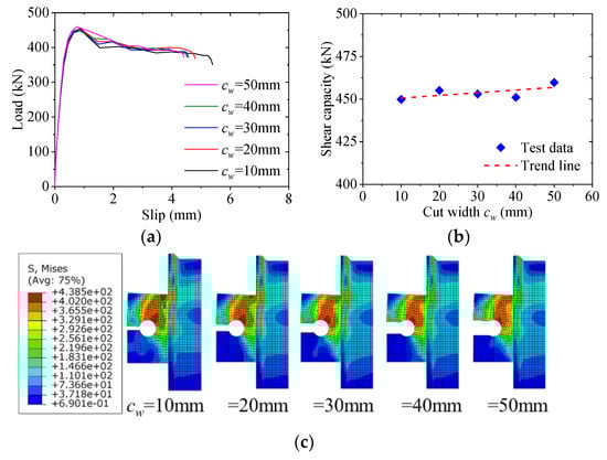 - In total, 43 finite element models of push-out tests were generated to evaluate the shear capacity of notched perfobond shear connectors. The shear capacity could be increased by 38% by increasing the perfobond thickness from 12 mm to 30 mm, by 43% by increasing the concrete strength from 30 MPa to 70 MPa, by 37% by increasing the steel strength from 235 MPa to 460 MPa. The hole diameter, the cut width, the rebar diameter and the rebar strength have little effect on the shear capacity of notched perfobond shear connectors.