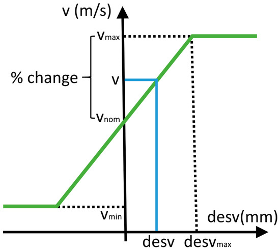 The speed of a movement connecting two points, , is established by means of the diagram shown in Figure 4, taking the mean value of the deviations of the two points being connected: