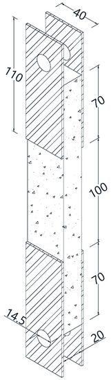 The reinforcement ratios of the specimens that were produced with one and two layers of textile are 0.4% and 0.8%, respectively. The reinforcement ratio can be expressed as follows: