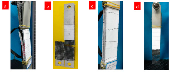 Debonding failure of TRM specimens: (a,b) P0C1S0 and (c,d) P0C2S0.
