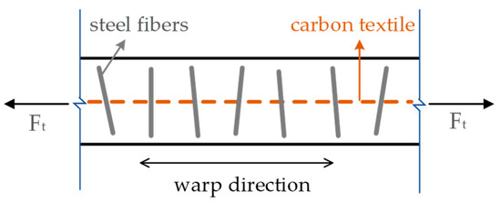 In this study, the tensile performance of carbon TRM was examined with respect to the reinforcement ratio of the textile, the addition of steel fibers at different volume fractions, and the prestressing force applied to the carbon textiles. The specific test schemes included two primary specimen series in which TRM composites that were reinforced with one or two textile layers were produced; control specimens with no textile layers were also produced.