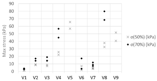 Figure 14 summarizes the compression test results. The stresses increased as a function of density for both the constant and the varying CNF ratio series. It was not possible to compress samples V5 and V9 to 70% with the 1 kN load cell that was used.