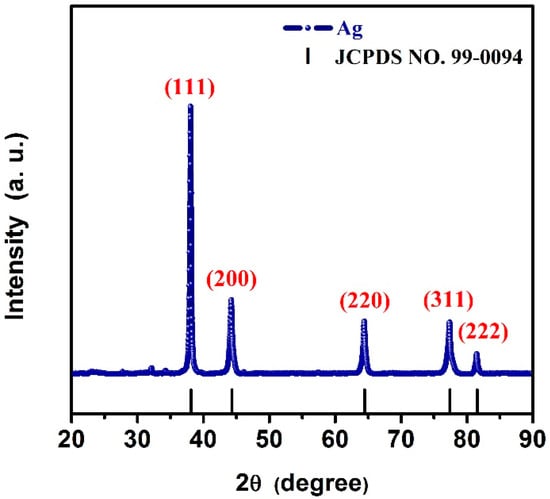 XRD patterns of the as-synthesized pure AgNWs, JCPDS: 99-0094 of the Ag phase.
