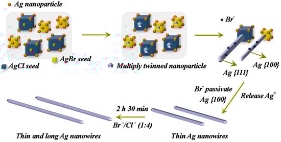 - Zhang, P.; Wei, Y.L.; Ou, M.; Huang, Z.Z.; Lin, S.D.; Tu, Y.Y.; Hu, J. Behind the role of bromide ions in the synthesis of ultrathin silver nanowires. Mater. Lett. 2018, 213, 23–26. [Google Scholar] [CrossRef]