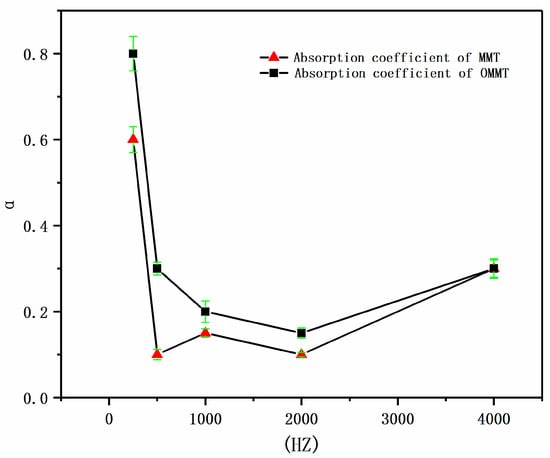 Comparison diagram of sound absorption coefficient of MMT and OMMT.