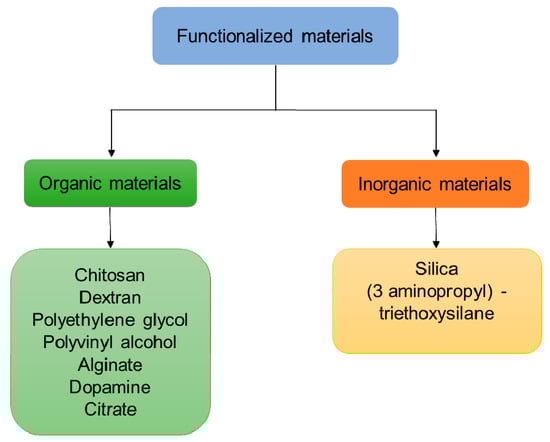 Flowchart of classification of organic and inorganic materials used for the functionalization of IONPs [51].