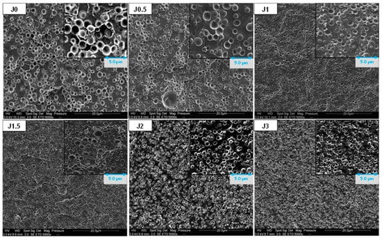 Figure 9. SEM observations of tensile fracture surface for injected PLA80-Jx.