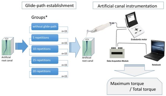 However, so far, there has not been any research reported on whether there is a minimum or an optimal number of repetitive insertions to the working length of these glide-path instruments in an attempt to reduce the torsional stress, i.e., the risk of torsional failure on the canal-shaping NiTi instruments used during the shaping procedure after the glide-path has been established. Therefore, the aim of this study was to compare the torque generation during canal shaping with a NiTi shaping instrument after different numbers of insertions of glide-path files to the full working length.