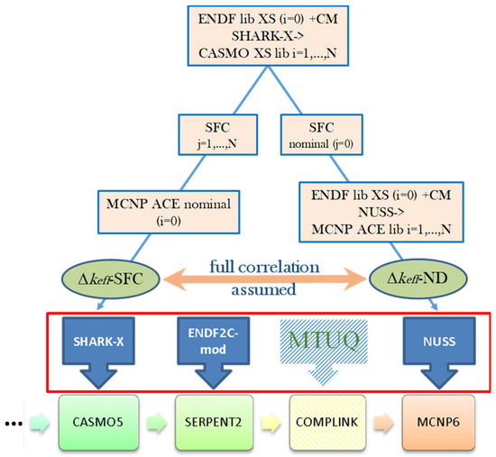 - Vasiliev, A.; Rochman, D.; Zhu, T.; Pecchia, M.; Ferroukhi, H.; Pautz, A. Towards Application of Neutron Cross-Section Uncertainty Propagation Capability in the Criticality Safety Methodology. In Proceedings of the International Conference on Nuclear Criticality Safety ICNC-2015, Charlotte, NC, USA, 13–17 September 2015. [Google Scholar]