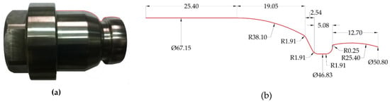 (a) The component; (b) analyzed surface of the part and its geometrical dimensions.