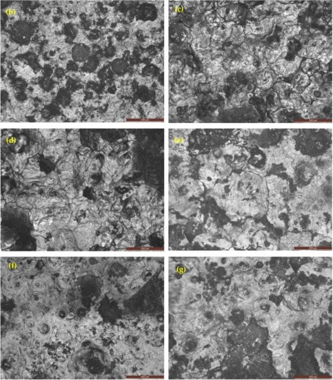 3.4.2. Optical Images after Corrosion in 0.5 M H2SO4 Solution
