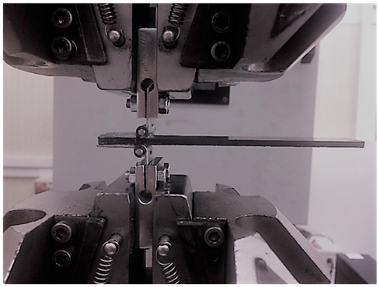 The experimental campaign includes nine CFRP DCB specimens. They were realized by combining carbon fibers and CYCOM® 977-2 resin. The fibers were high performance fibers having both intermediate modulus of elasticity (265-320 GPa) and strength (IMS), the filament diameter was about 5–7 µm, and the resin was a thermosetting one with a density of 1.31 g/cm3. Laminates were made by applying a co-bonding process in autoclave curing phase (at 180 °C and at 6 bar of pressure). The half of the plate was firstly cured, then a non-adhesive insert and the not-cured half of the plate were placed on the first part, after which a final curing phase was applied. An even number of unidirectional layers composed the laminates and the delamination growth stirring along the fibers’ direction. A non-adhesive insert was introduced at the midplane of the laminates for inducing the delamination onset [18]. The length of the film was 45 mm, while its thickness was less than 0.013 mm. The specimens were cut from the plates; their sections had a rectangular shape, were 25 mm wide and 125 mm long, and had a uniform thickness of 3 mm (Figure 1). Tests were carried out on a servo hydraulic loading machine, Instron 1342, at constant displacement rate (1 mm/min) and at environmental controlled conditions, with T = 23 °C. In Figure 2 the specimen gripped in the testing machine is reported.