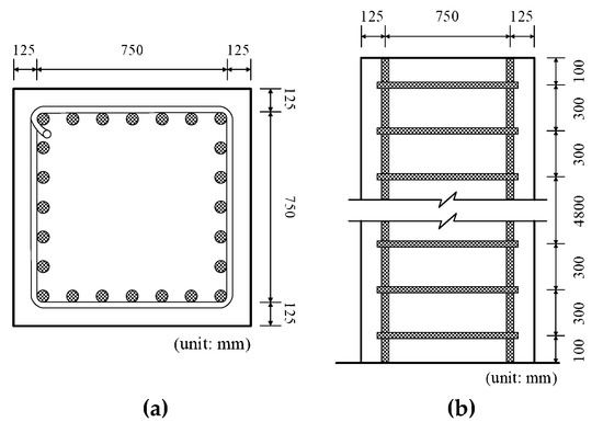 Dimensions of RC column: (a) cross-sectional dimension and (b) longitudinal dimension.