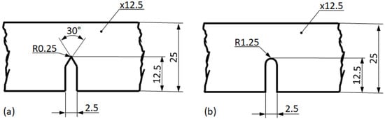 The investigated notch geometries: (a) sharp notch; (b) blunt notch.